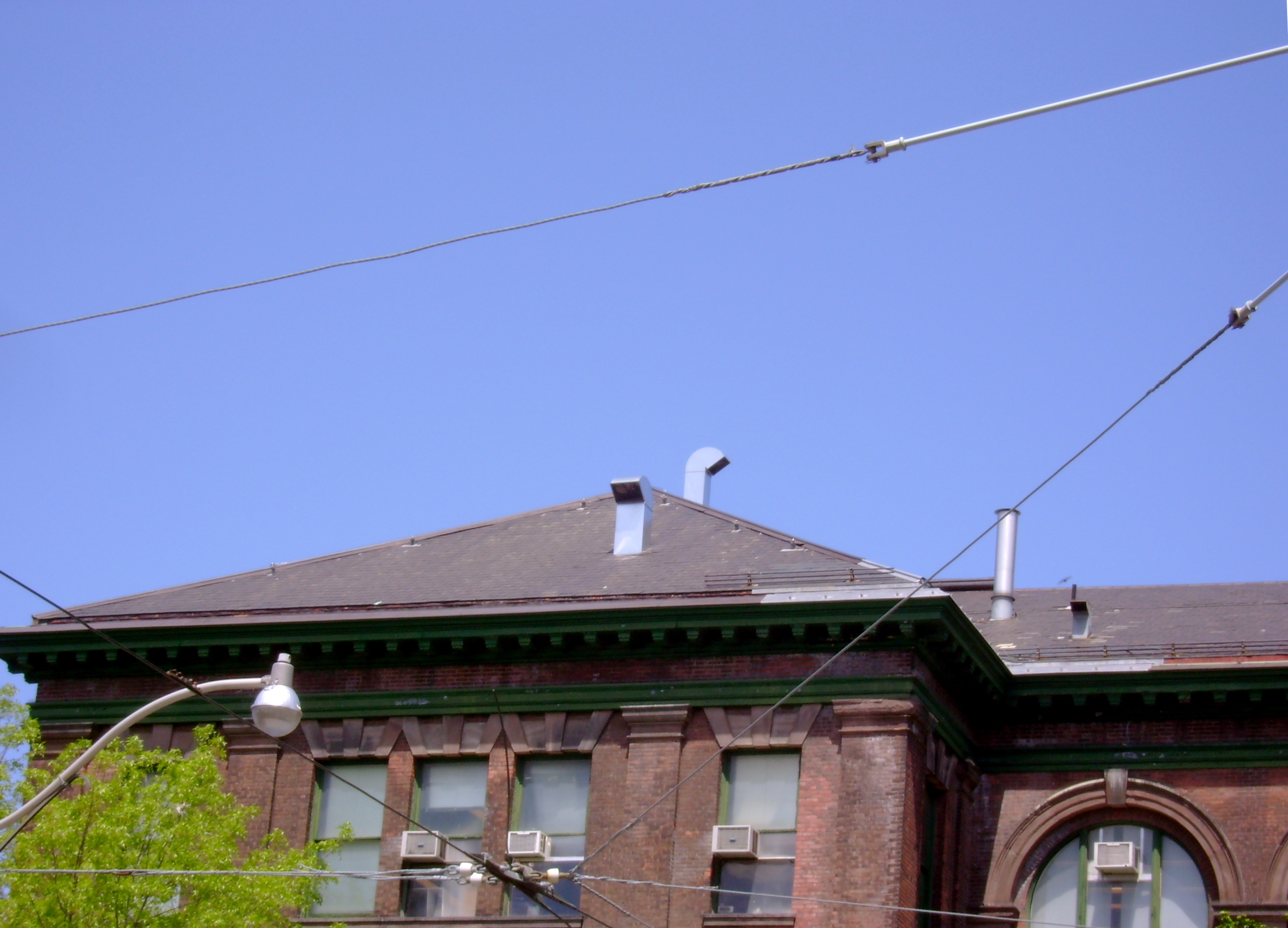 Timereading Series No. 6: Sky Camouflage. The painted pipes at 170 College St in Toronto.